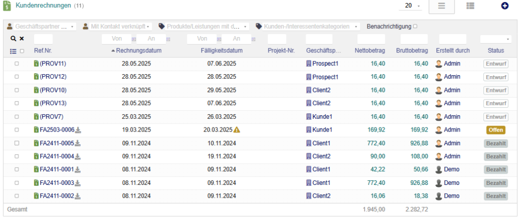 Alle diese Informationen fließen in das Buchhaltungsmodul ein, um in Echtzeit die finanzielle Situation Ihres Unternehmens zu erfassen und den Austausch mit Ihrem Steuerberater vorzubereiten.