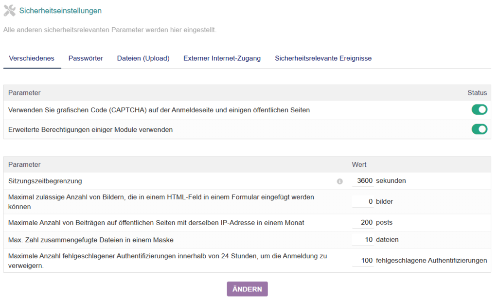 Zeigen Informationen über den Sicherheitszustand Ihrer Installation an. - Sicherheitsereignisse