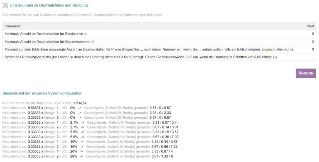 - Dezimalstellen für Einheitspreise