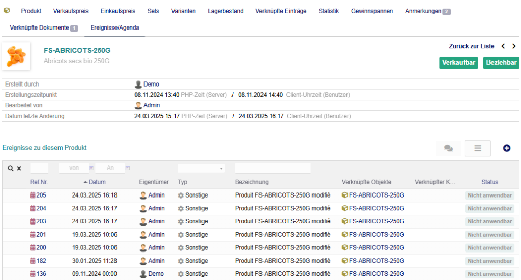 Es dient dazu, die in i-Faktur durchgeführten Aktionen zu protokollieren. Die ausgewählten Aktionen werden mit Datum, Uhrzeit und dem Benutzer, der sie ausgeführt hat, dokumentiert.