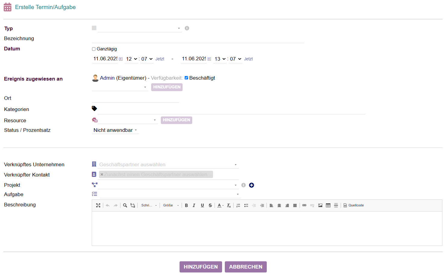 Das Modul „Kalender“ wird auch von anderen Modulen genutzt, wie z. B. dem Modul ‚Projekt‘ oder „Ticket“. Die genauen Funktionen sind in den jeweiligen Modulen beschrieben.