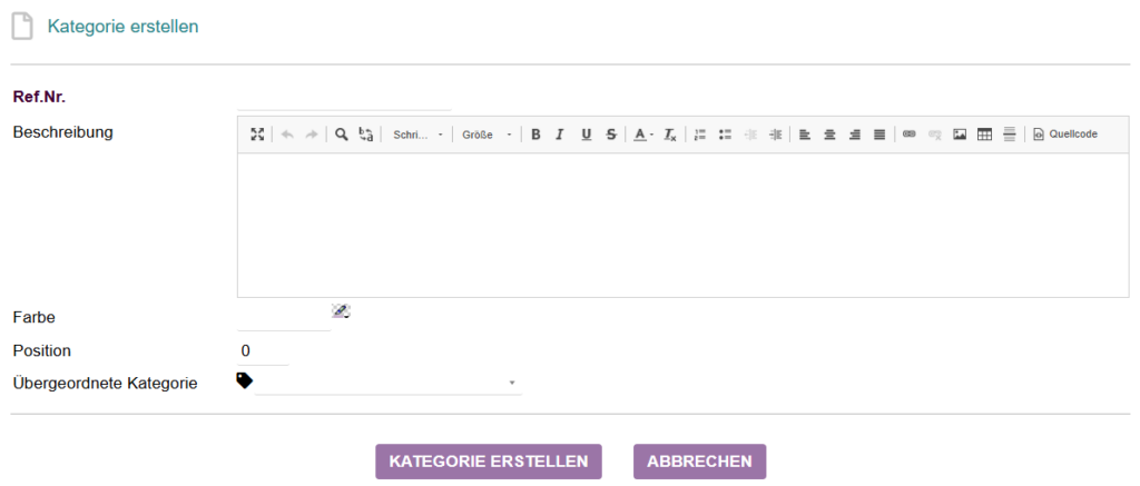 Die Position der Kategorie in der Kategorienlsite. - Übergeordnete Kategorie