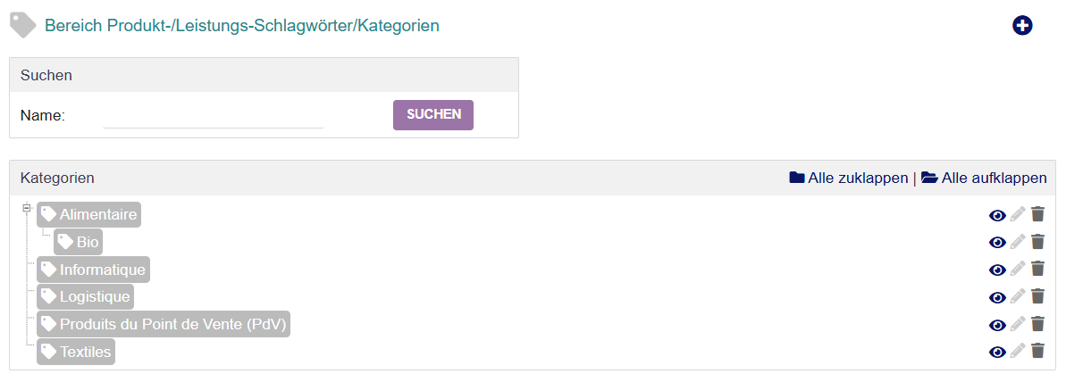 Das Modul „Kategorien“ wirkt auf mehrere Module ein. Es ermöglicht Ihnen, Beschriftungen oder Kategorien zu definieren, um die von diesen Modulen verwaltete Daten zu gruppieren und zu ordnen.