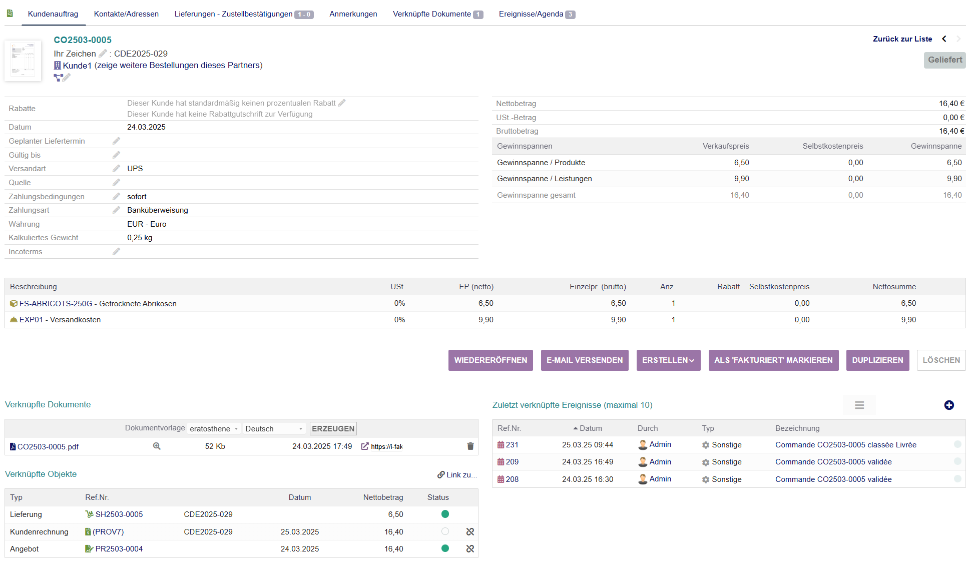 - Entwurf / Freigegeben / In Bearbeitung / Geliefert / Storniert