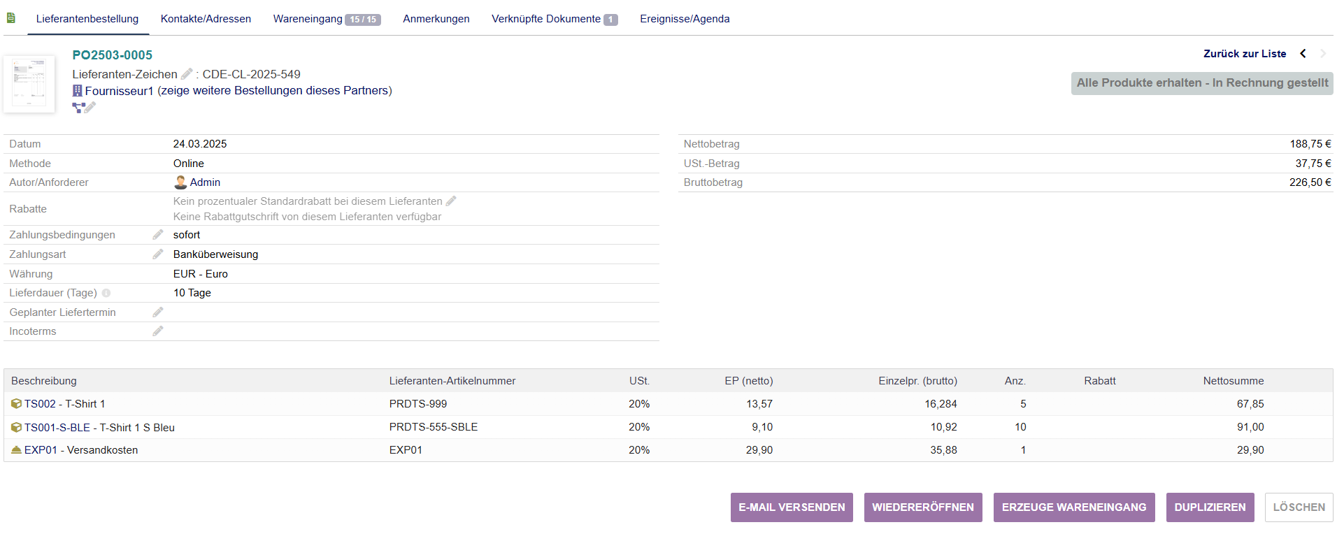 Sobald eine Bestellung validiert und genehmigt wurde, wandeln Sie sie in eine Lieferantenrechnung um. - archivieren