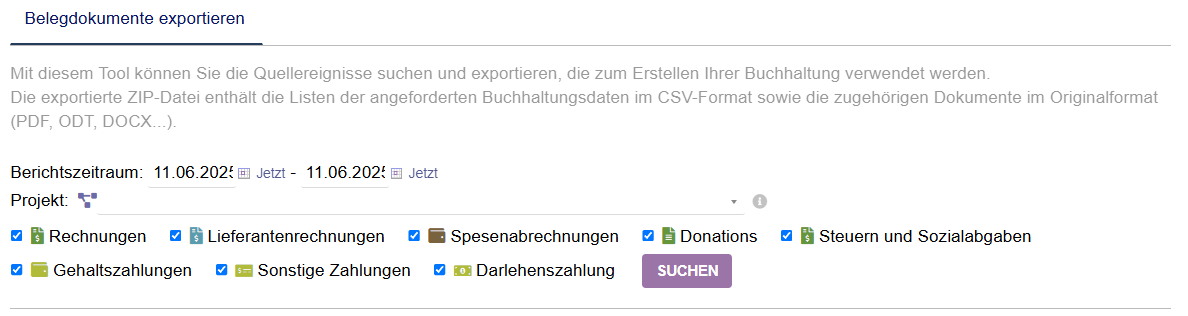 Es ermöglicht den Export der erfassten Daten zur Erstellung einer Buchhaltung.